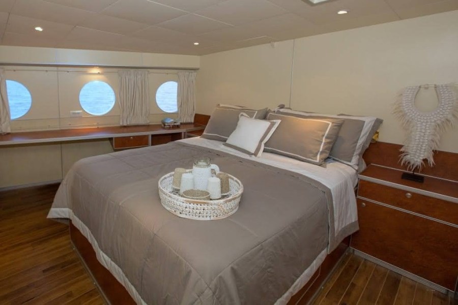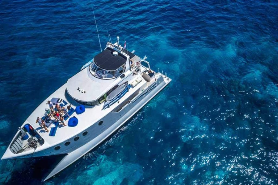 This 72 ft long-range dual hull cruise catamaran was designed and built in Australia by AUSTRAL a marine company that is well-known for its excellent safety and great comfort.This Grand Dame has one double en-suite master room and two bunk berth guest rooms with separate bathrooms all fully air-conditioned. Onboard, there is WIFI, Sound System, flat-screen TV, airconditioned lounge area & a full-service galley.