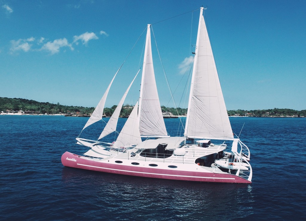 AneeCha is an iconic 24meter catamaran purposely built for leisure sailing cruises, with comfort and beauty in mind. She has a perfect combination of the sensual lines and curves that evoke an impressive symmetry and harmony with the ocean. That is also what makes this stunning catamaran very level and steady in the open ocean. AneeCha sails well and handles marvelously Bali’s various sea and weather condition.