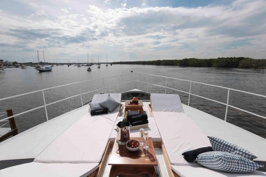 This beauty is designed creatively to create a comfortable and spacious atmosphere, makes her perfect for leisure sailing cruises. With a space that could carry up to 45 people (however currently restricted to 30 pax due to the pandemic), she is a great option for any celebration from intimate wedding to a fabulous sunset boat party.