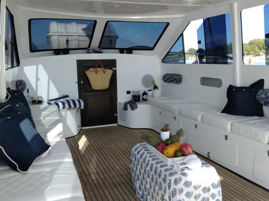 She is a great choice for a day charter to relax and enjoy time with friends, honeymooners, explorers, and family getaway. You could also charter the boat to enjoy Bali lavish sunset on our sunset cruise program while enjoying divine food and wine.