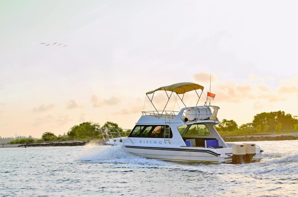 She is a great choice for a day charter to relax and enjoy time with friends, honeymooners, explorers, and family getaway. You could also charter the boat to enjoy Bali lavish sunset on our sunset cruise program while enjoying divine food and wine.