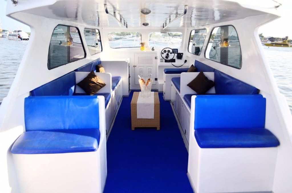 She is a 12.3 meter well-kept boat with U-shaped lounge-style seating to give convenience and comfort throughout the charter. She caters to up to maximum of 15 guests. The upper deck section of the boat has shade covers. She cruises at 15-18 knots per hour but could speed up to 20 knots/hour.